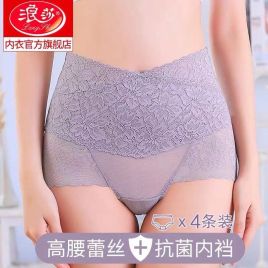 浪莎高腰蕾丝内裤女超薄无痕收腹提臀内裤女夏天塑形收小肚子WL