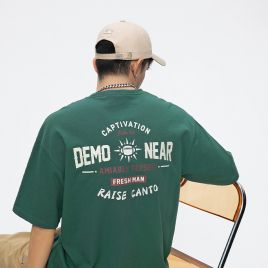 高品质情侣港风宽松印花短袖T恤男2022夏新款纯棉潮流男装体恤