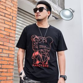 潮牌胖哥小熊印花半袖衫加大码男装时尚都市短袖T恤宽松纯棉休闲