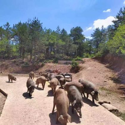 磐安县仁川镇胡庄村村民山林饲养的土猪,散养的模式让猪有更多的活动空间,猪肉长得密实,口感鲜香,让人吃一口难忘