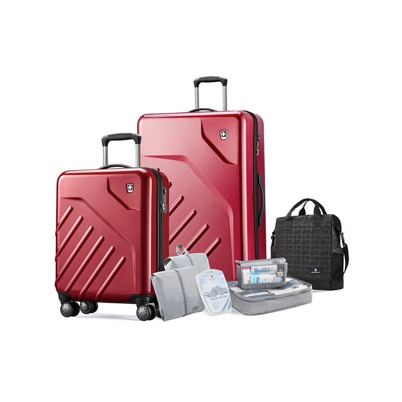 产品类别:瑞动20+28英寸拉杆箱套装重量:11.06kg尺寸:50cm*27cm*79m材质:PC+ABS卖点:1.两个拉杆箱,20寸登机箱和28寸大容量拉杆箱,三色可选2.手提斜挎包,超大容量主仓设计,书本杂志、大件衣物都可以轻松收纳3.充气式U型枕,方便收纳,可折叠,有效缓解颈部压力4.收纳四件套套装,洗漱袋、衣物袋、鞋袋和内衣袋,方便行李分类