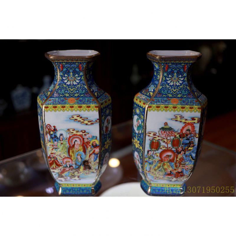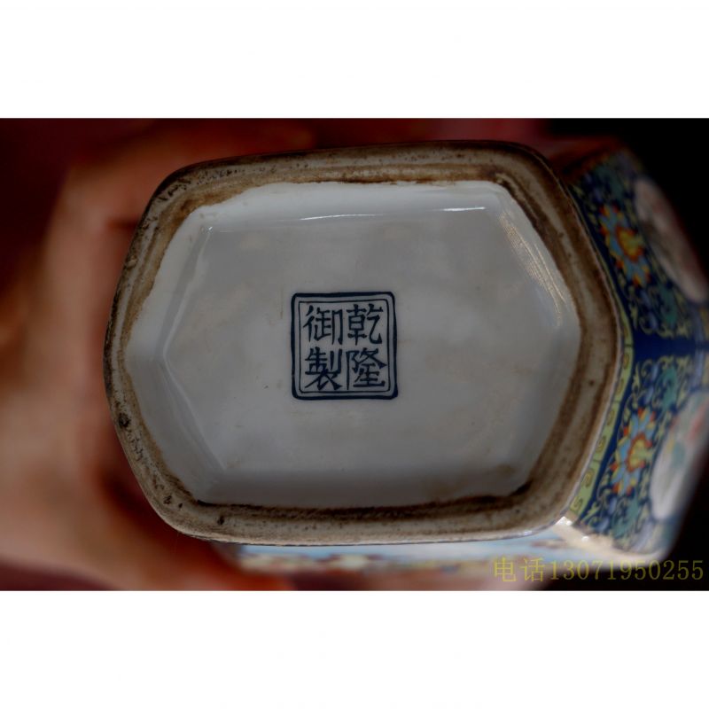 《乾隆年制》款珐琅彩开光人物故事图六方瓶一对