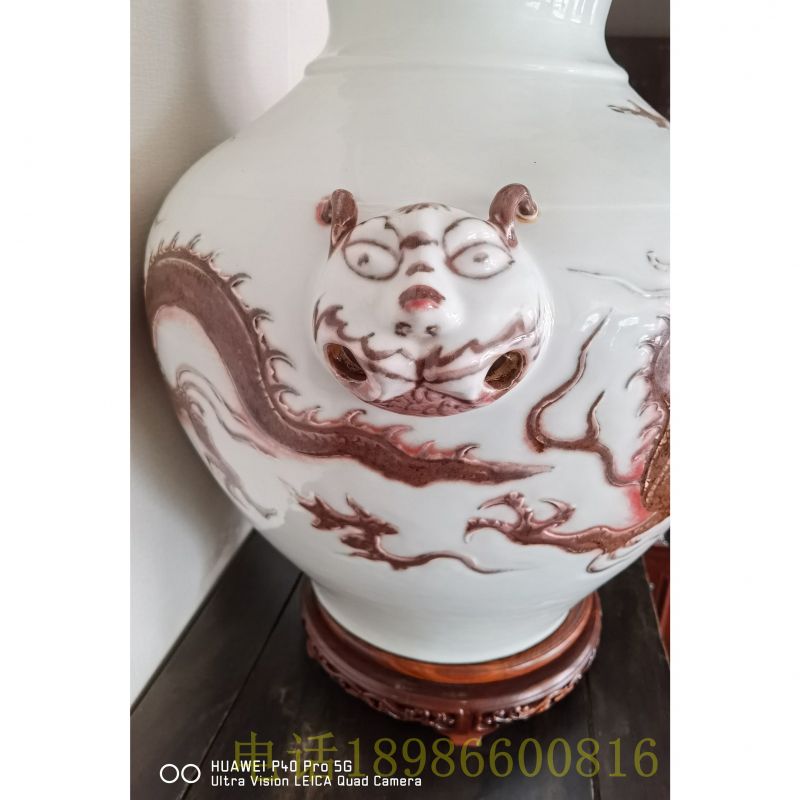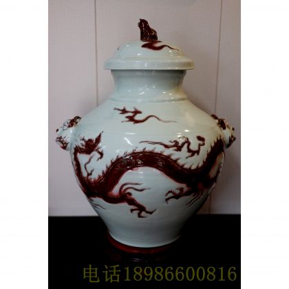 釉里红龙纹曽耳大罐