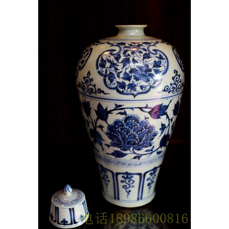 青花缠枝牡丹如意花卉纹梅瓶