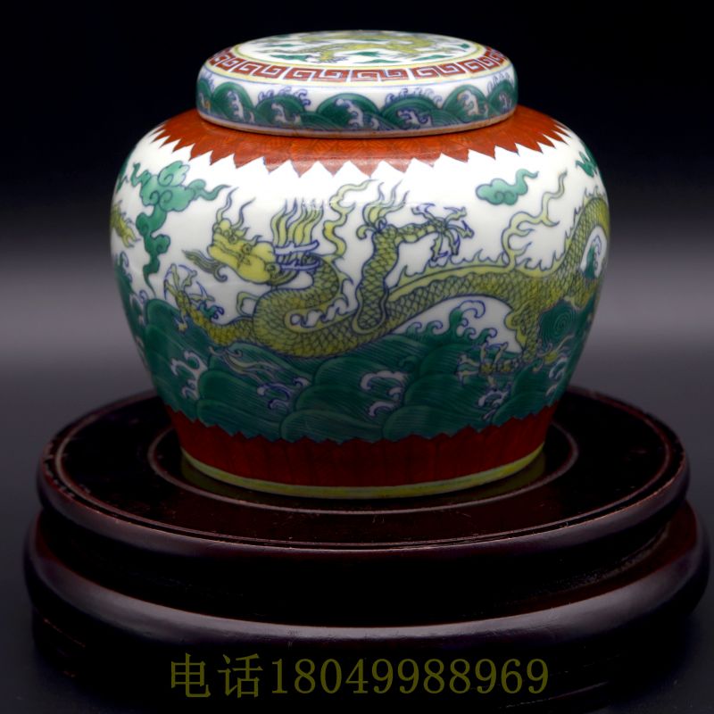 斗彩天字盖罐