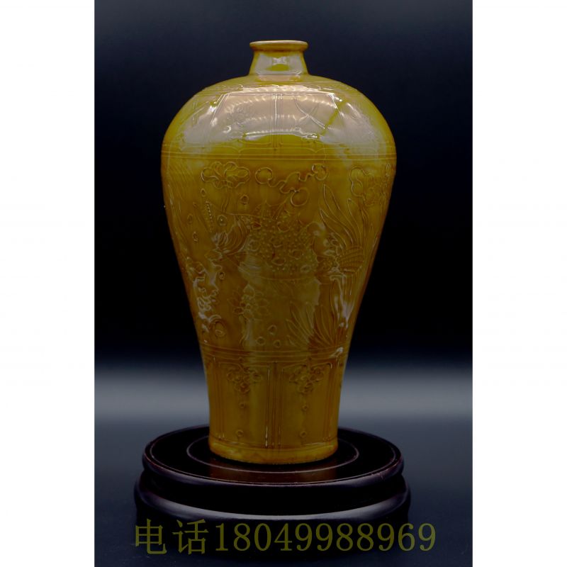 黄釉鱼藻纹梅瓶