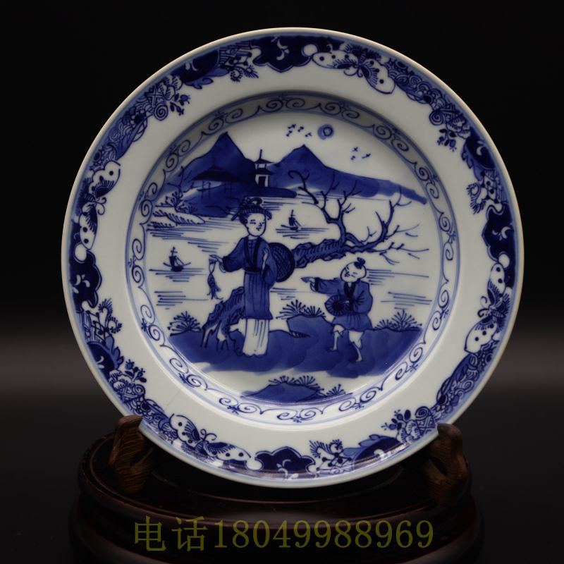 青花人物故事盘