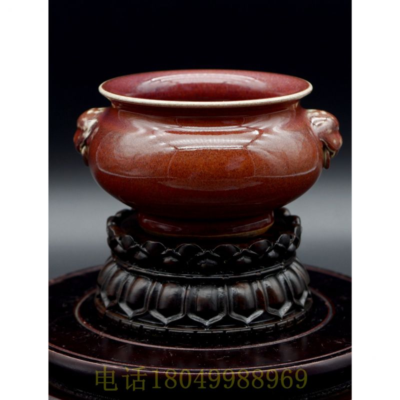 红釉双兽耳香炉