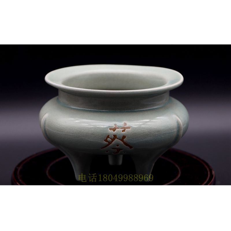 青釉汝窑三足香炉