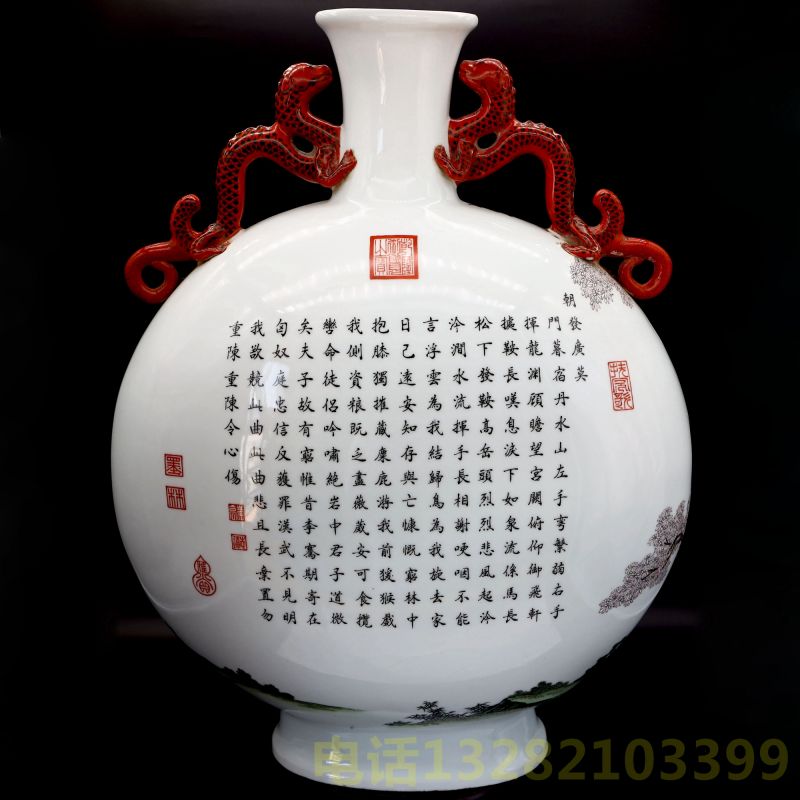 达清乾隆年制款粉彩刀马诗文抱月瓶