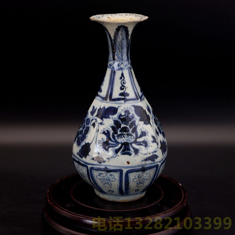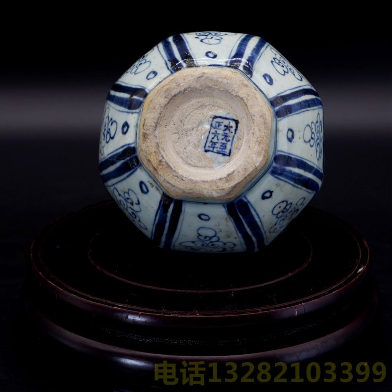 大元至正六年款青花缠枝牡丹八棱瓶