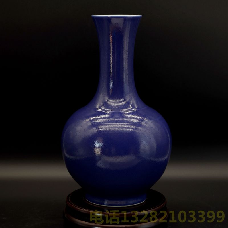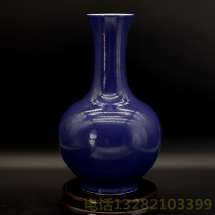 大清雍正年制款光绪祭蓝釉撇口赏瓶