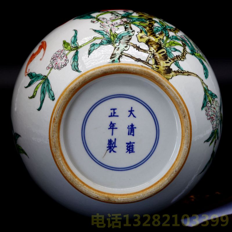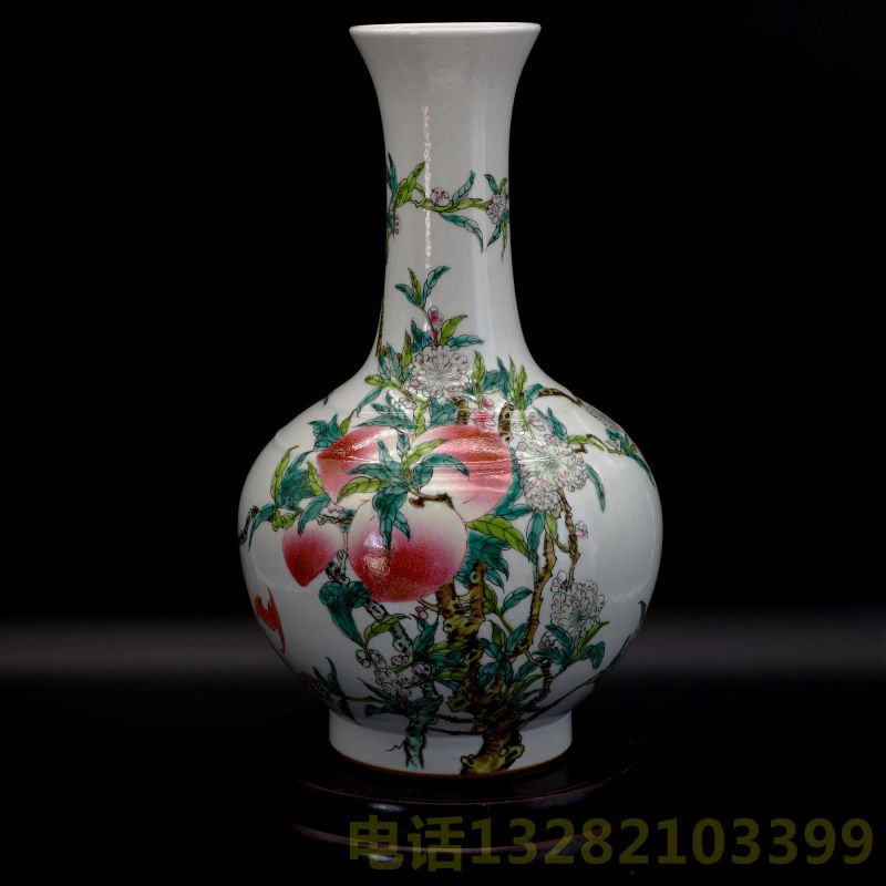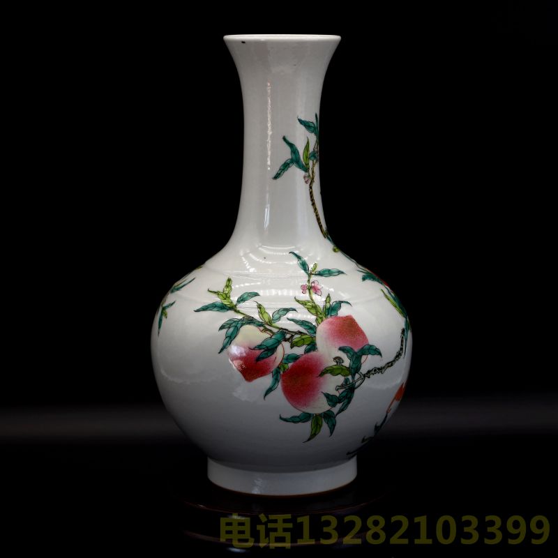 大清雍正年制款粉彩九桃瓶