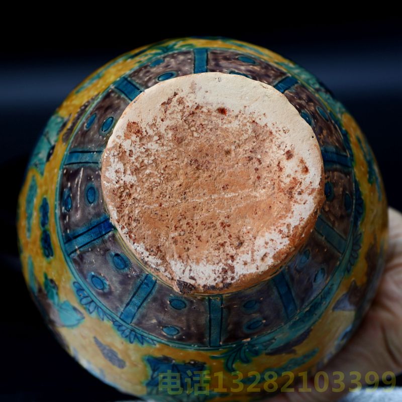 宋代黄地素彩双系盘口瓶