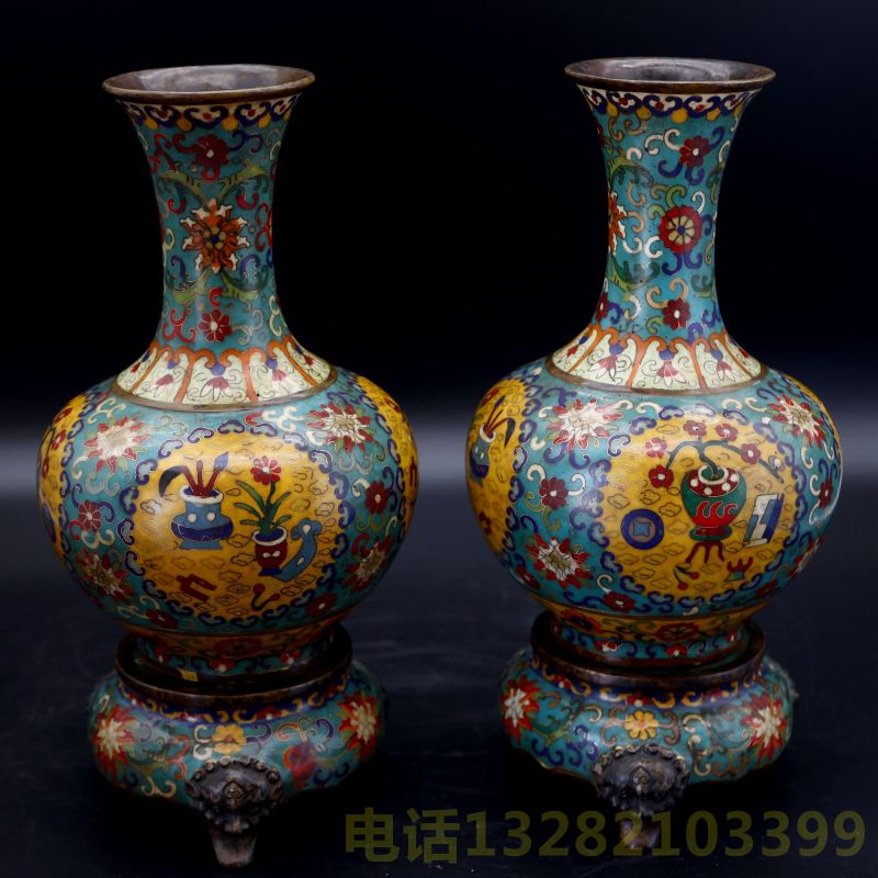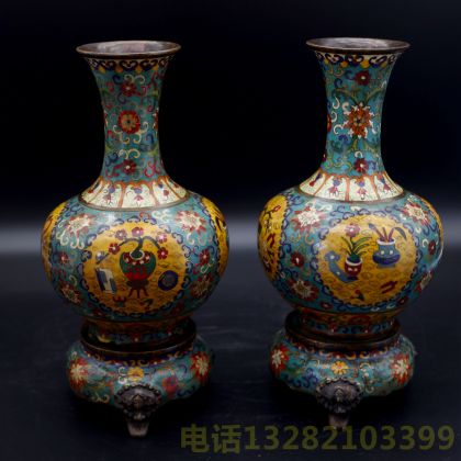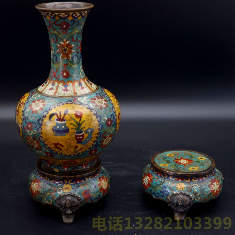 乾隆年制款铜胎嵌丝珐琅彩带基座赏瓶