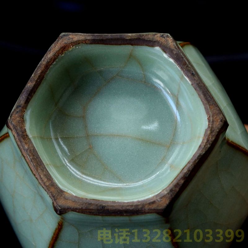 南宋修内司窑月白釉六棱瓶