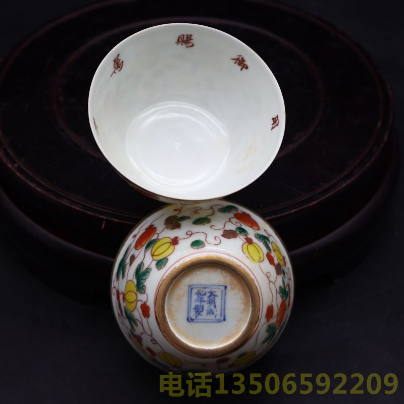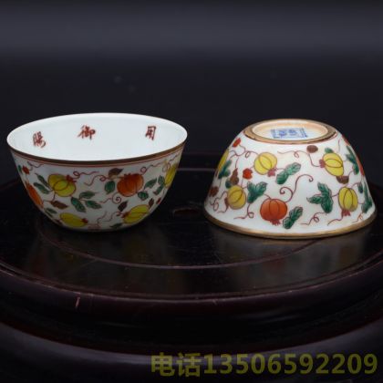 “大明成化年制””款御赐万贵妃专用”瓜藤杯一对