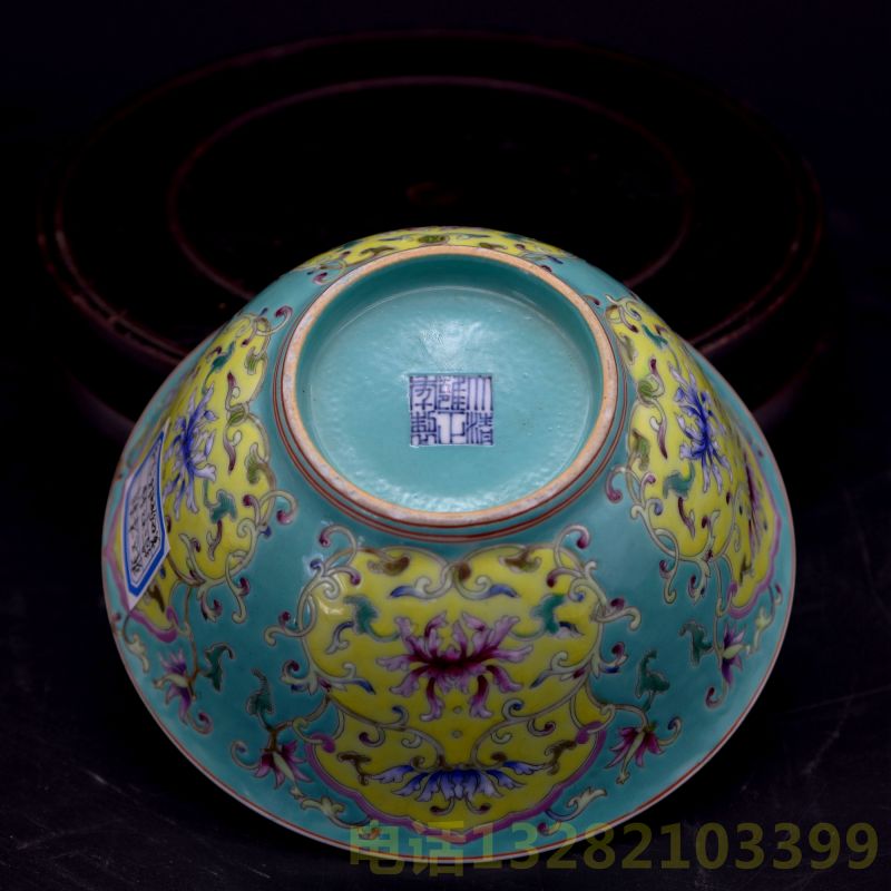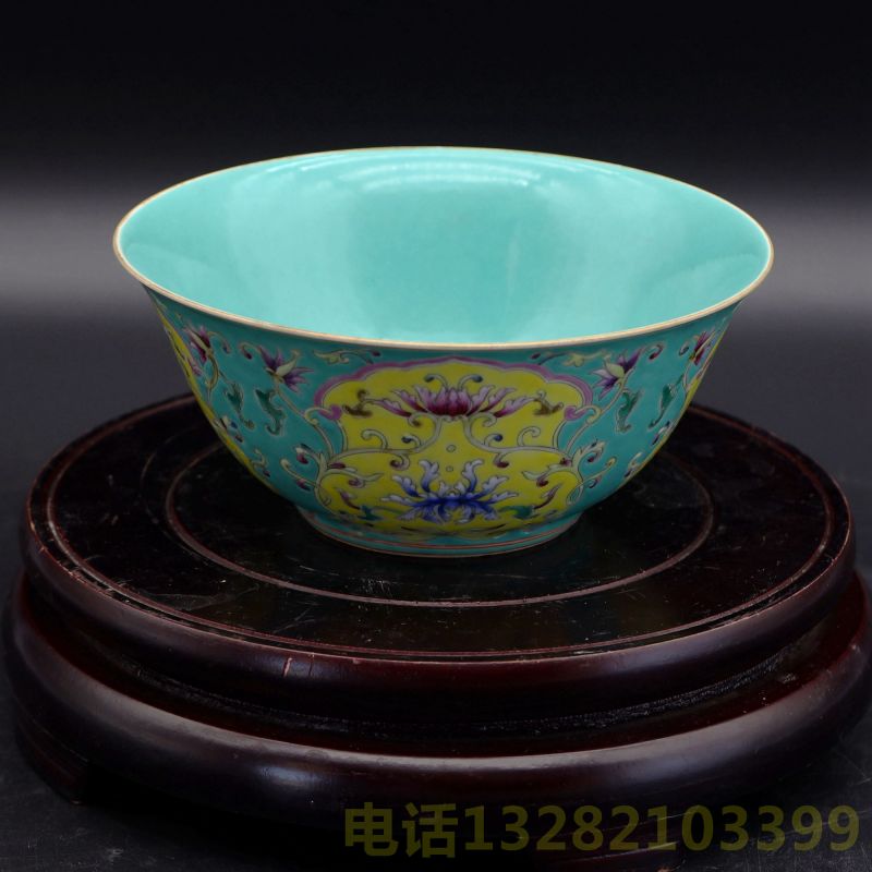 大清雍正年制款绿松釉开窗缠枝菊宫碗