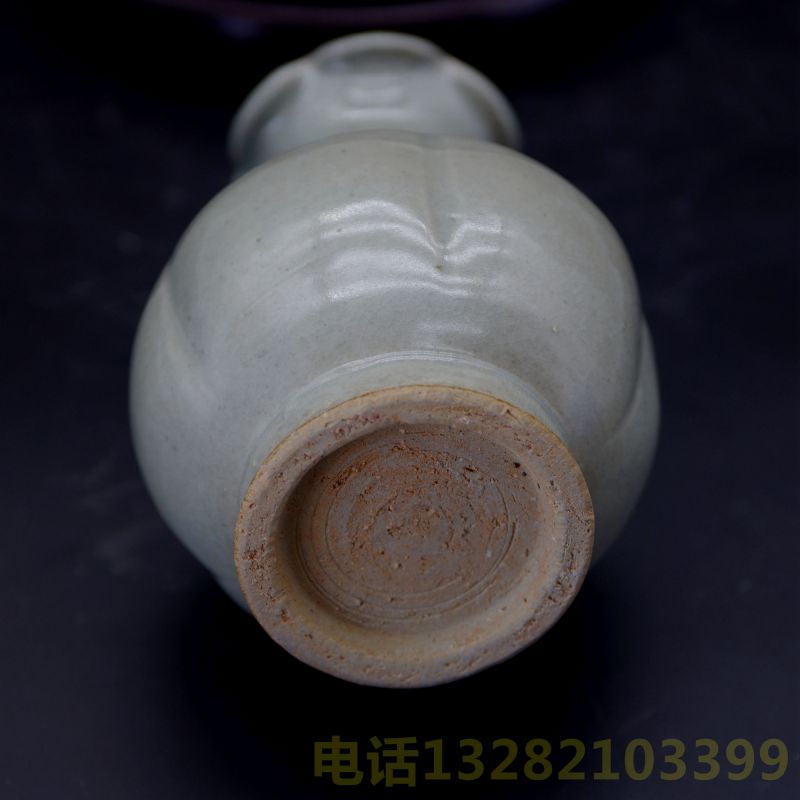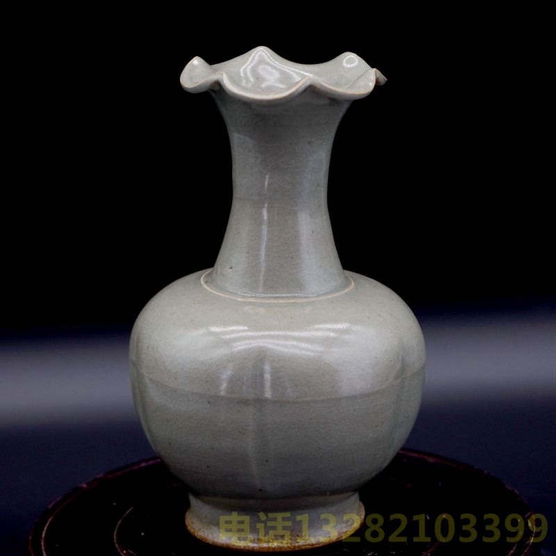 宋越窑青瓷盘龙荷口瓜棱瓶