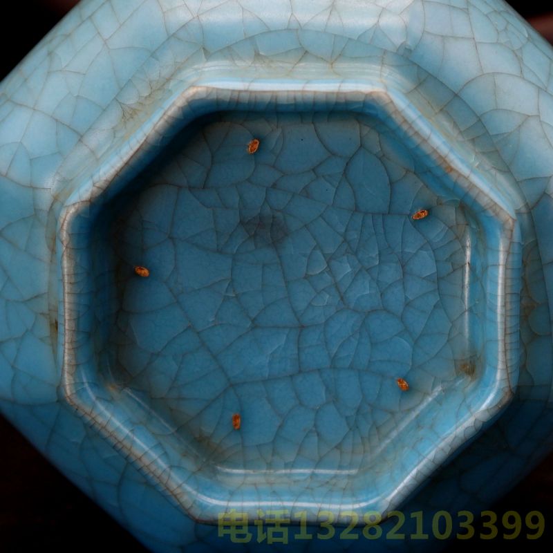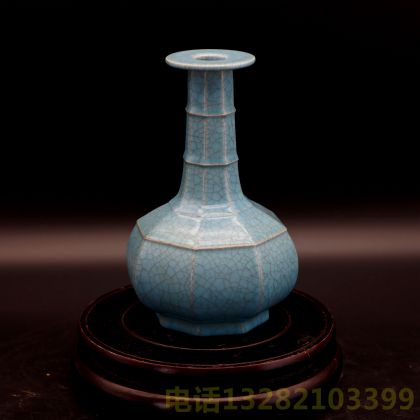 宋汝窑芝麻钉弦纹玉碧八棱瓶