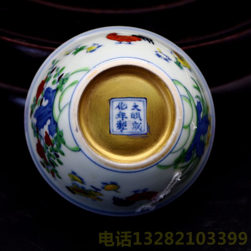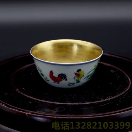 大明成化年制款内流金鸡缸杯(残!不缺)