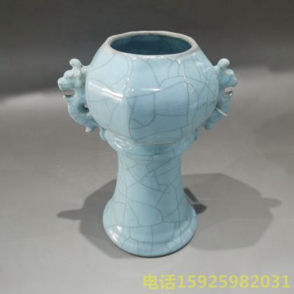 官窑双龙耳八方瓶