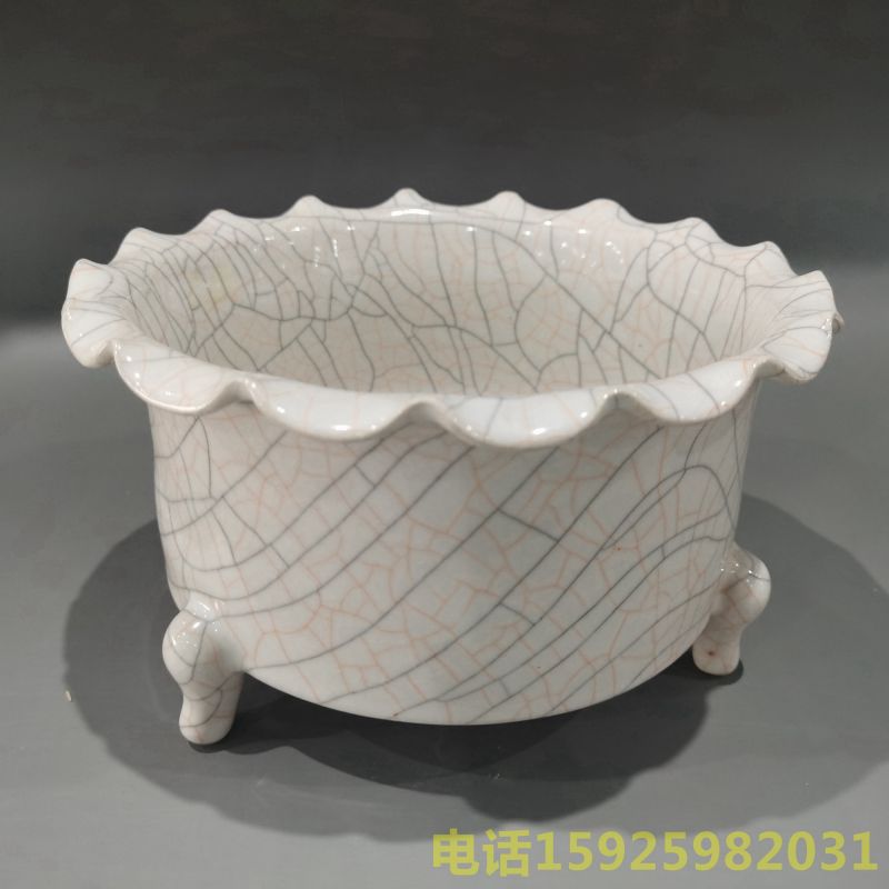 官窑三足花口洗