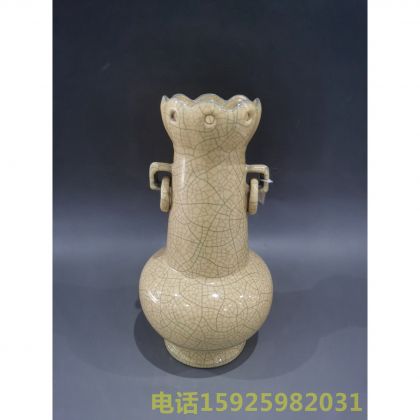 哥窑双耳衔环花口瓶