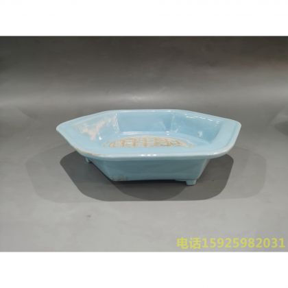 汝窑题字六方盘