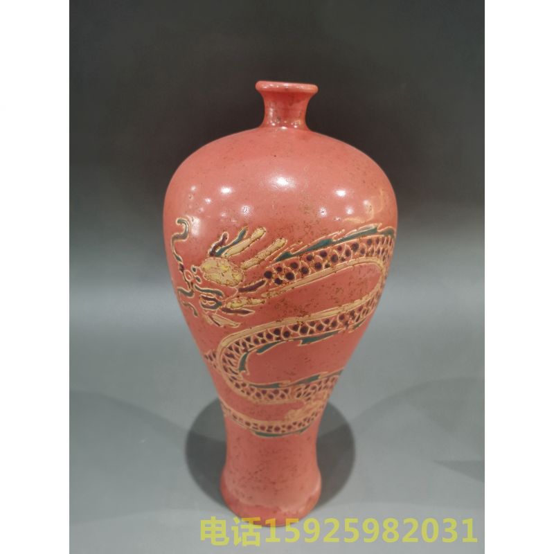 定窑红釉云龙纹梅瓶