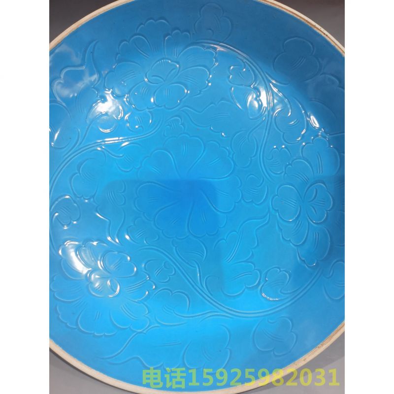 定窑蓝釉暗刻花纹盘