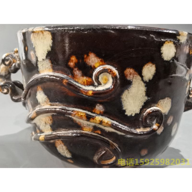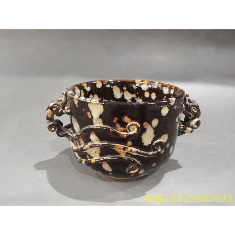 吉州窑玳瑁釉双耳杯
