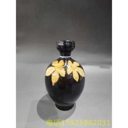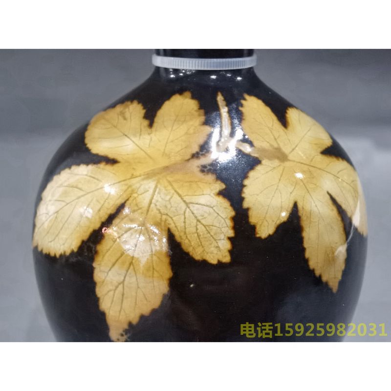吉州窑木叶贴花盘口瓶