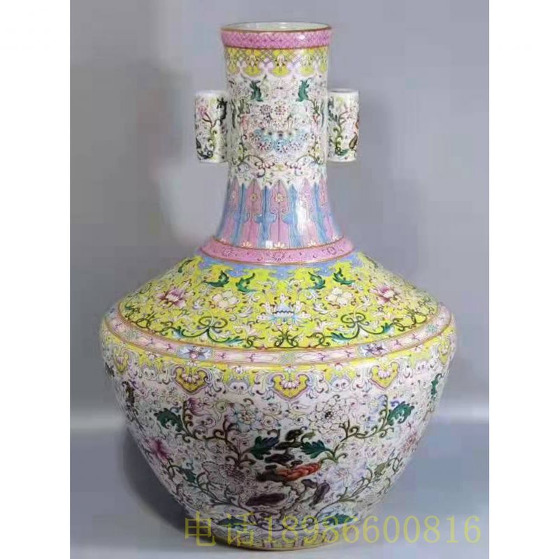 此贯耳瓶为雍正皇帝下旨并督办命工匠做一件代表章显康雍王朝盛世的佳器,一改人们心中对雍正无大器的想法,由于雍正皇帝治朝有方,心细百姓,不知疲倦长时间批阅奏章而累夸了身体,晚年不能治理朝政,从此这件粉彩灵芝缠枝莲贯耳扁肚瓶做为样瓶存入造办处瓷厂封存,这件瓷器之所以珍贵,此乃清康雍盛世的罕见绝品。