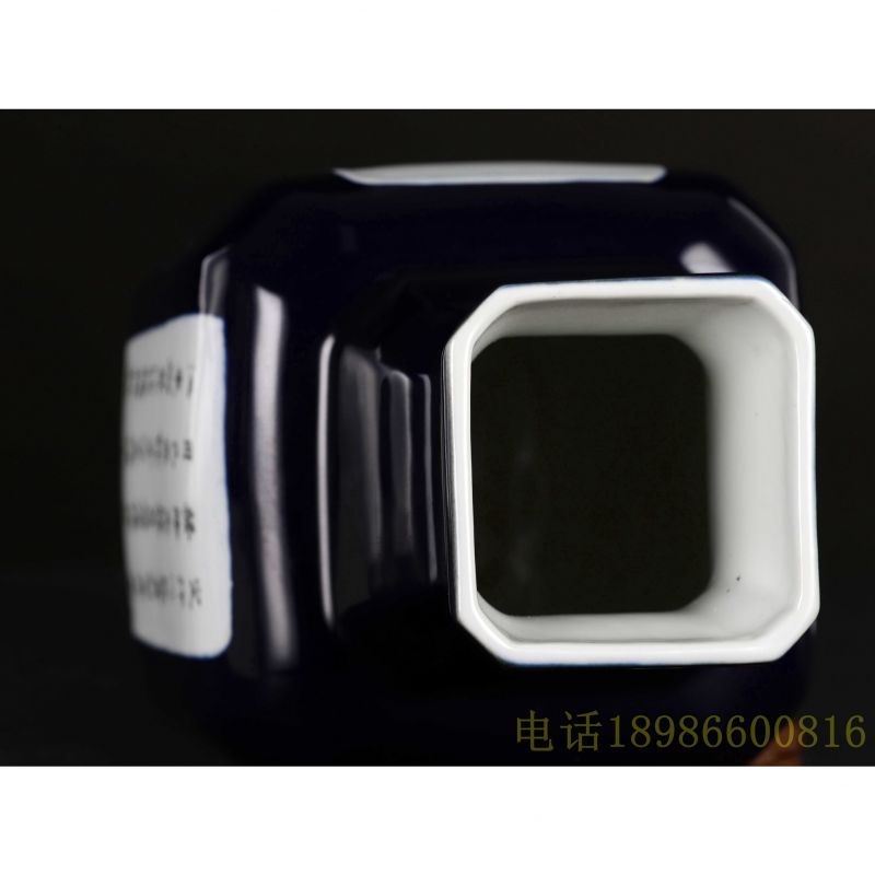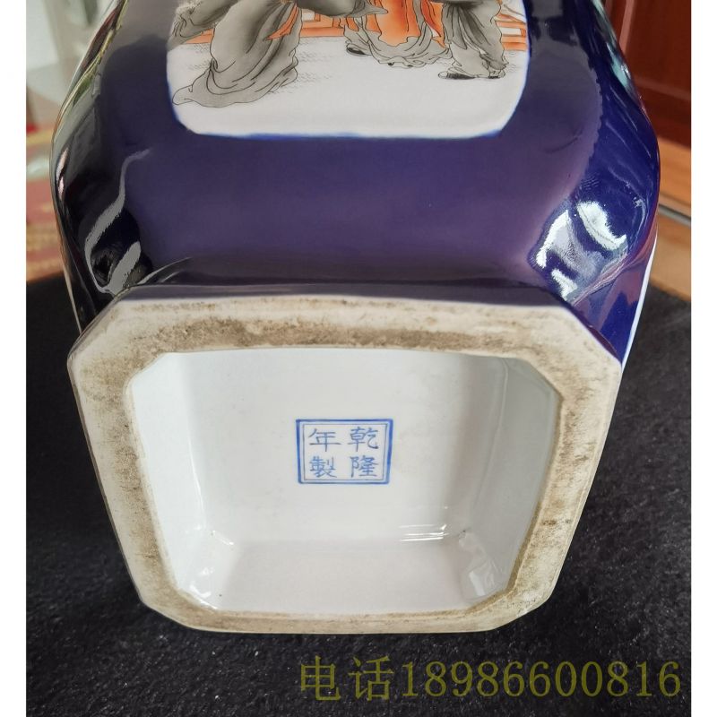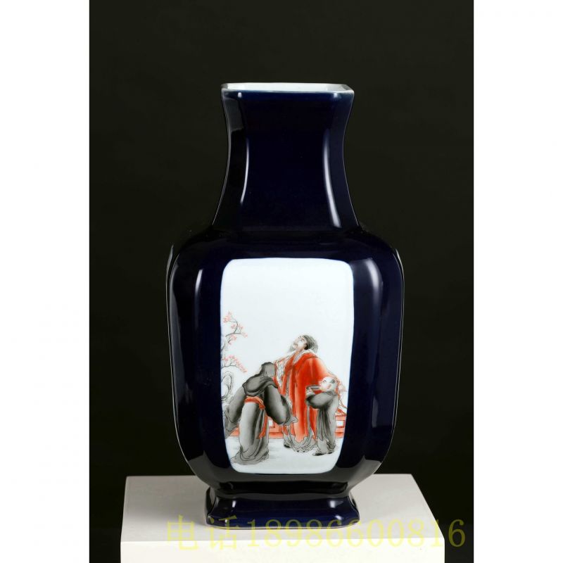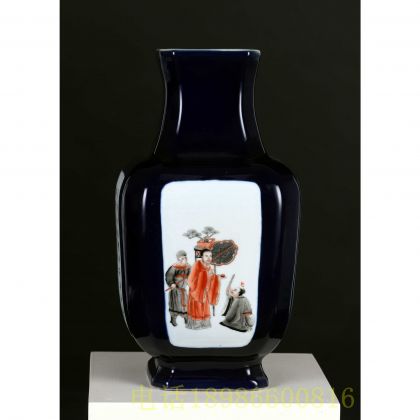 乾隆荠蓝釉粉彩人物诗文四方樽(珍品)