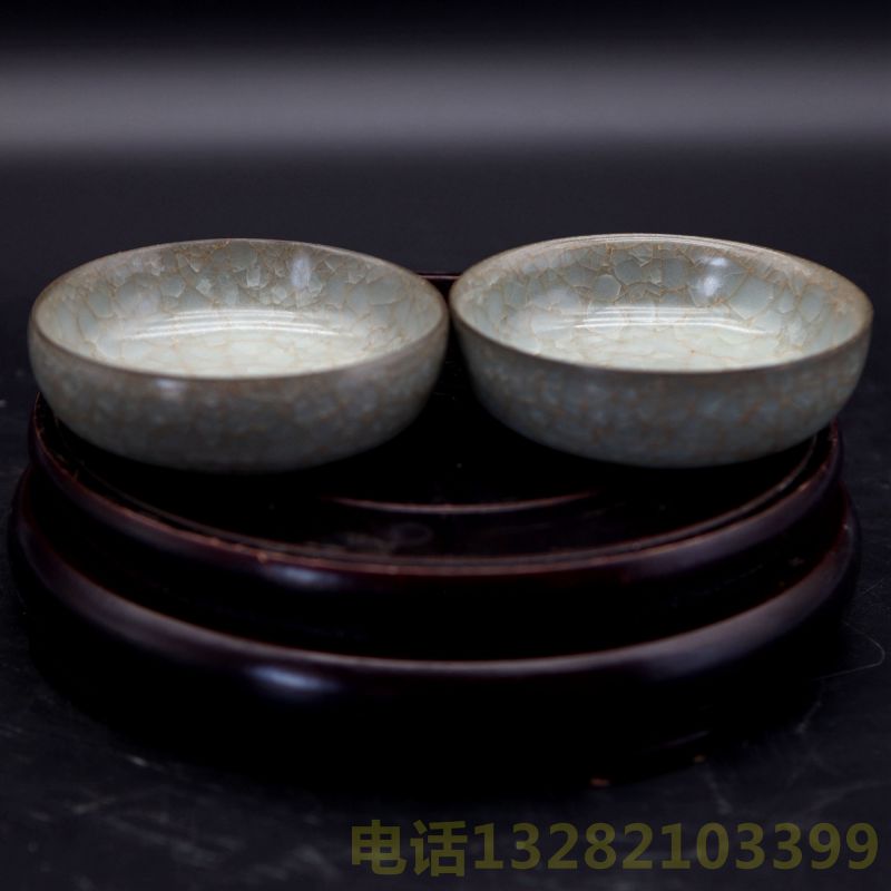 宋官窑冰片纹洗一对