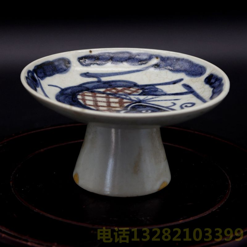 元青花釉里红鱼纹高足杯