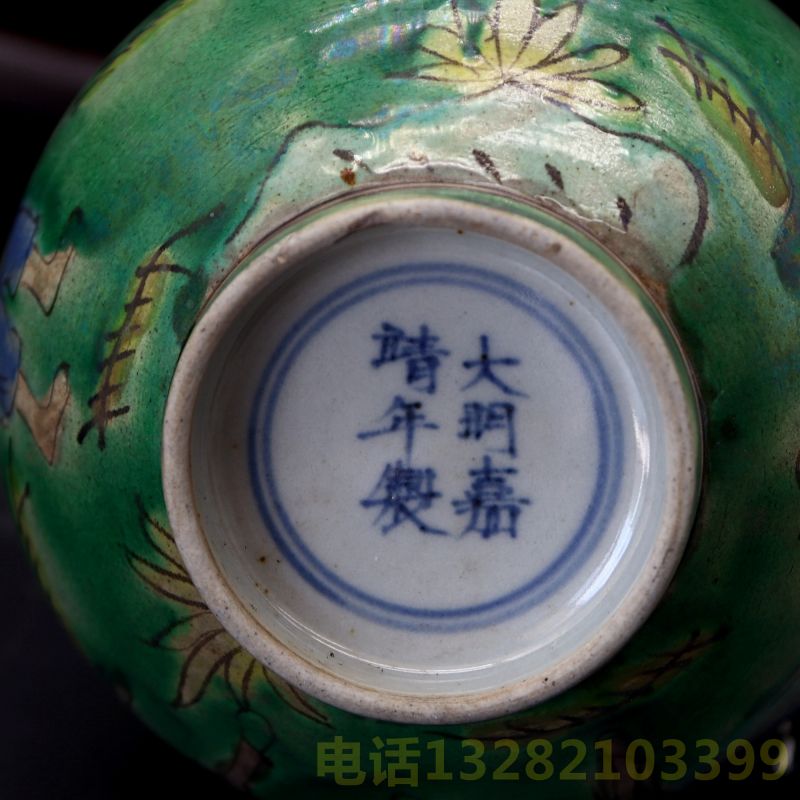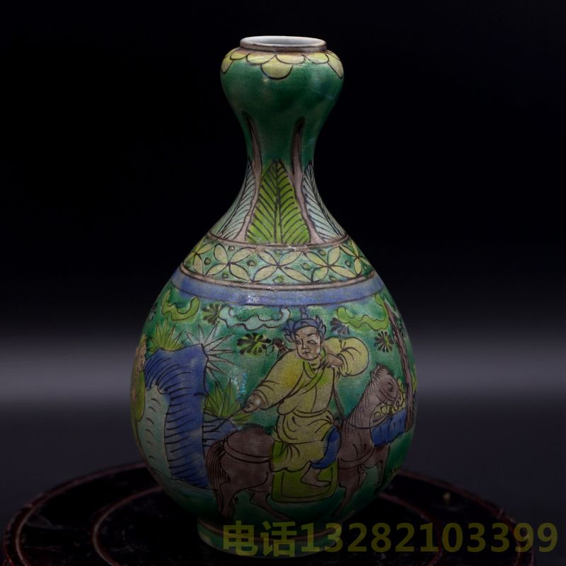 大明嘉靖年制青花款素三彩蒜头瓶