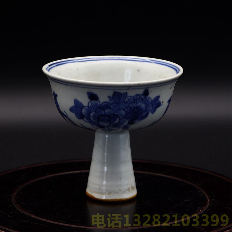 清代青花花卉纹饰高足杯