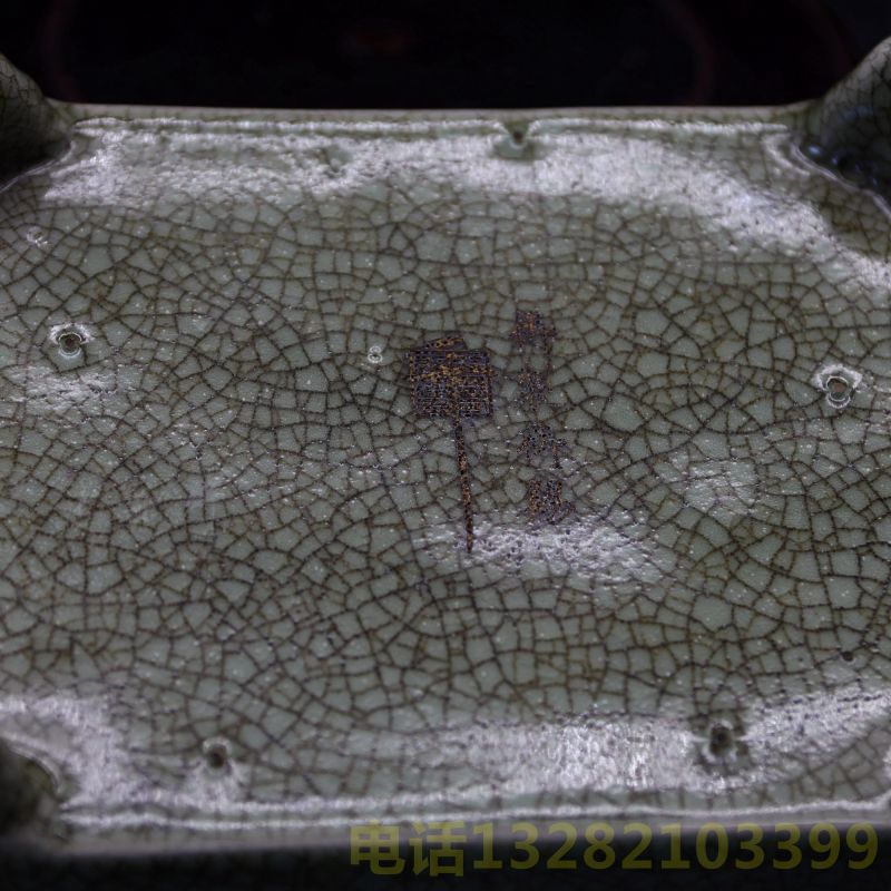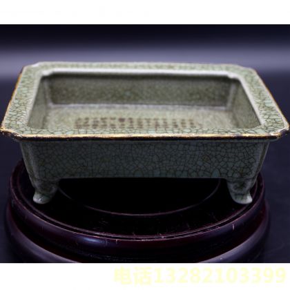 宋汝窑铮钉四足洗