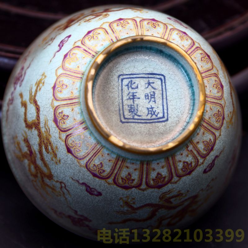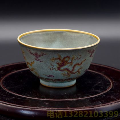 大明成化年制款云龙纹绿松釉描金胭脂红彩碗