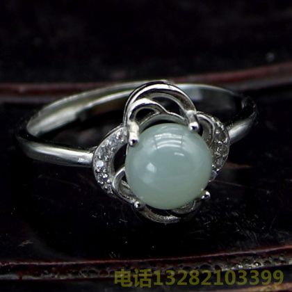 A货翡翠面银戒指