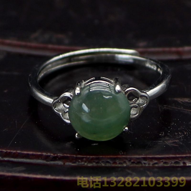 A货翡翠面银戒指