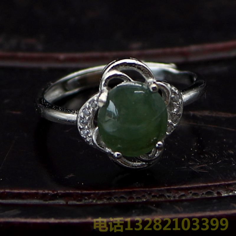 A货翡翠面银戒指