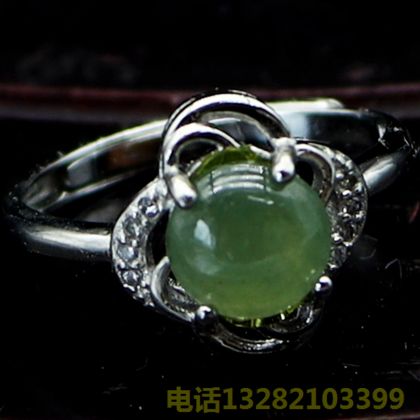 A货翡翠面银戒指