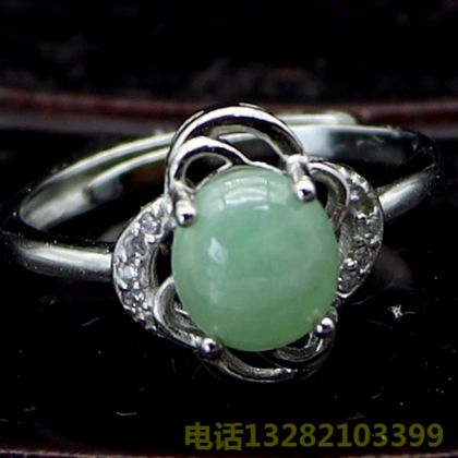 A货翡翠面银戒指