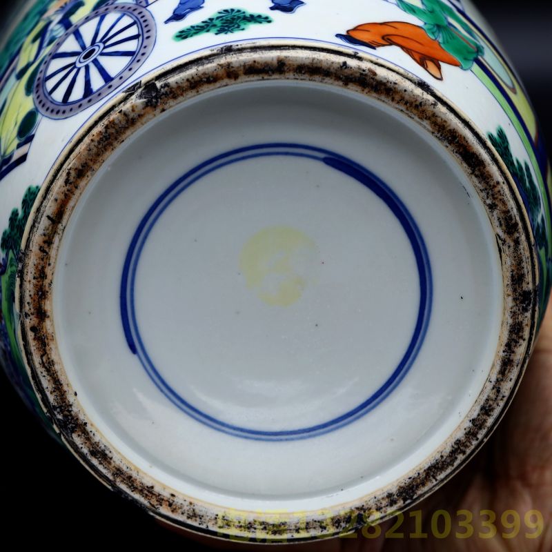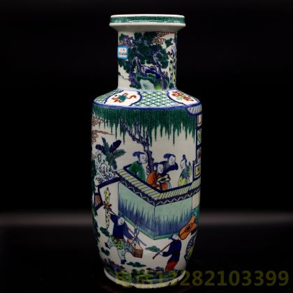 清代双圈款青花斗彩棒槌瓶