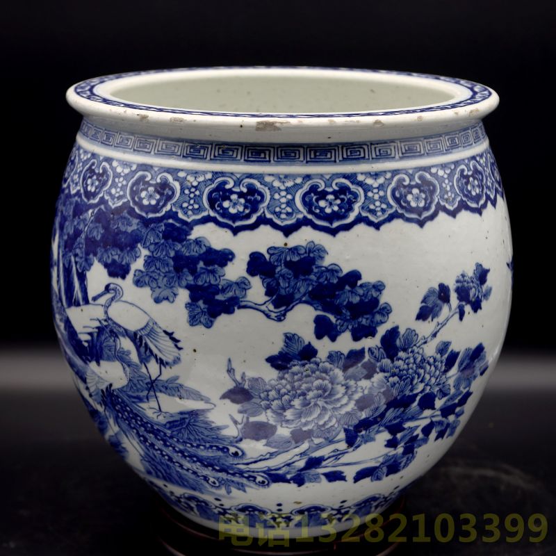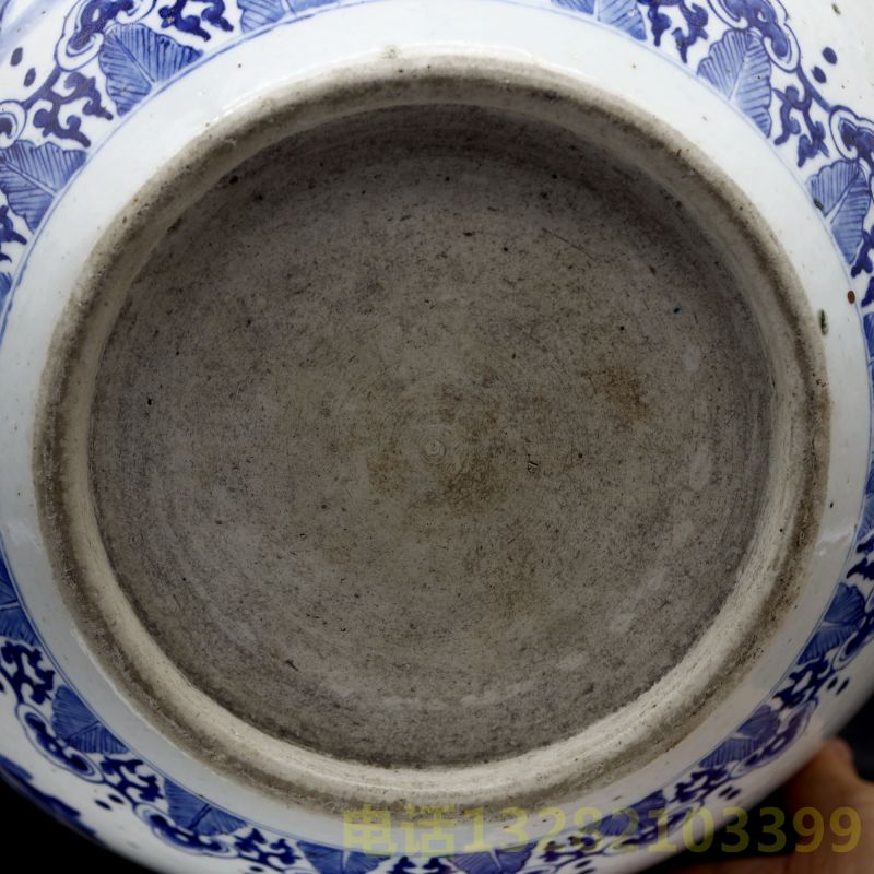清光绪青花花卉如意纹画缸