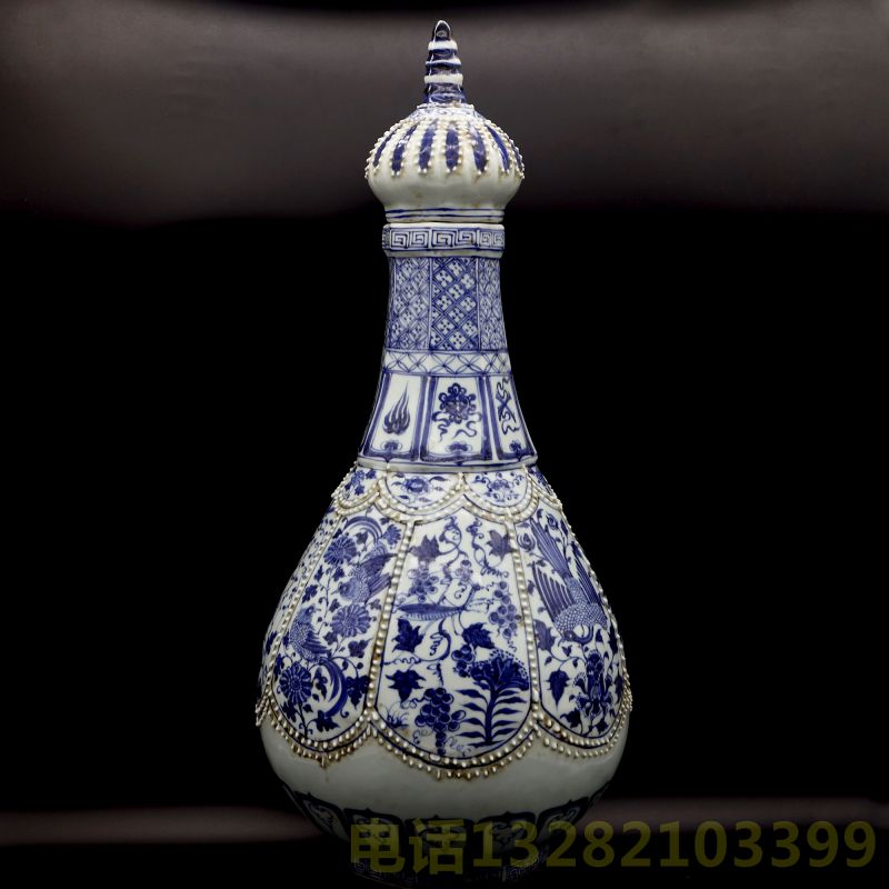 元青花珍珠花卉百宝纹带盖玉壶春瓶