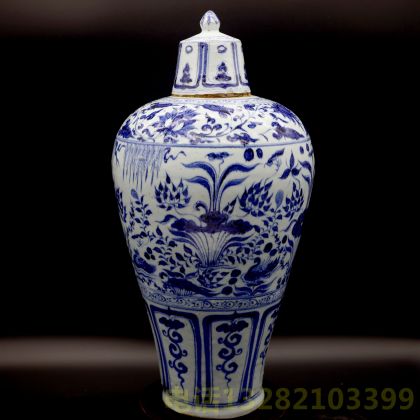 元青花池莲荷塘缠枝纹梅瓶